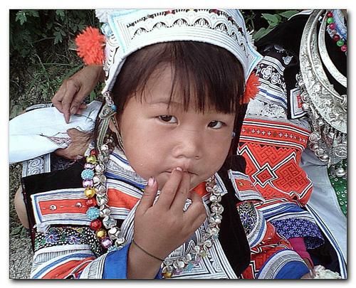 圖為革家姑娘在接請(qǐng)姑媽過“十四”前,母親總要為女兒作一番打扮