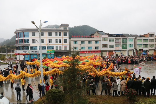 2019年2月16日農(nóng)歷正月十二是瓦寨鎮(zhèn)傳統(tǒng)大型集會活動日,舞龍為主要活動之一。午飯后,來自全縣各地的舞龍舞獅隊(duì)、花燈隊(duì)陸續(xù)到瓦寨政府廣場集結(jié),并在廣場右側(cè)有序排隊(duì)等待,各隊(duì)隊(duì)員精神抖擻、神采飛揚(yáng)、迫不及待。前來參觀元宵舞龍的群眾和游客也不斷涌向廣場,大街小巷行人猶如潮涌,吆喝聲、歡笑聲、鑼鼓聲連綿不斷……下午五時許,活動在瓦寨鎮(zhèn)政府廣場正式開始,先是由鎮(zhèn)領(lǐng)導(dǎo)對脫貧攻堅(jiān)各項(xiàng)惠民政策及5年來瓦寨取得的攻堅(jiān)戰(zhàn)績進(jìn)行宣講,宣講慳鏘有力、扣人心弦,特別是5年來瓦寨取得的攻堅(jiān)戰(zhàn)績,一致得到人民群眾好評和認(rèn)可。隨后,舞龍、舞獅、花燈表演紛紛上演,只見黃龍時而上下翻騰,時而昂首擺尾,雄獅時而就地打滾,時而賣萌撒嬌,樣子憨態(tài)可掬,花燈表演幽默滑稽,在前行中跑出各種套路,起伏波動、生動活潑,吸引了所有人的目光,贏得了陣陣喝彩……