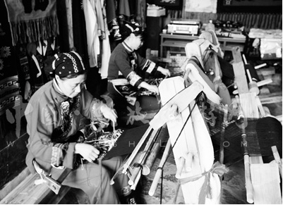 在這些土家女人手上,一架織錦機(jī),就是一個(gè)大千世界,它能真實(shí)或者夸張地織出存在于山上田野的所有物像。雖然她們的文化水平不是很高,卻能創(chuàng)造出一些很抽象的西蘭卡普?qǐng)D案。有時(shí),我更愿意這樣說(shuō):西蘭卡普是一種與人俱存的藝術(shù)。