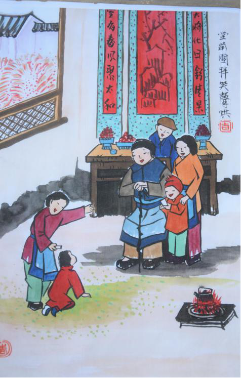 而張旭東的年味,則更加具象。繪畫是具象的藝術(shù),張旭東的畫是為過年而繪,為金華古鎮(zhèn)家家戶戶的年味而繪。