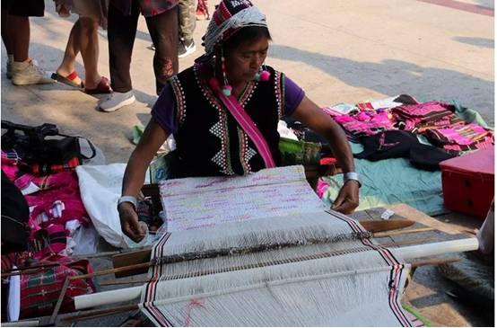 織錦是各民族生活中不可缺的勞作。紡線原料以棉纖維和麻纖維為主。 棉主要是草棉、白棉沙線、黑棉沙線、紅棉沙線,麻主要為苧麻和野生火麻。在織錦的過程中,婦女端坐在紡車前,凝神專注地操持著手中的活計(jì)。 織一匹布大約需要20天至一個月左右的時(shí)間。
