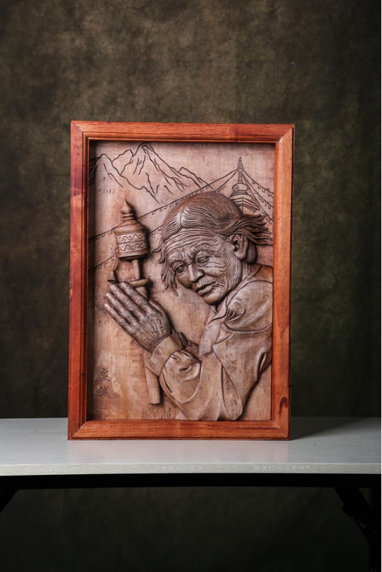 《門神》、《福滿門》這是劍川木雕在繼承傳統(tǒng)基礎(chǔ)上,對傳統(tǒng)的一種大膽嘗試性的發(fā)揚創(chuàng)作。這些作品的特點是,既保留了嫻熟的傳統(tǒng)木雕技藝,只是通過巧妙的組合,在現(xiàn)成的古老大門上雕出“門神”或用舊門框作為木雕作品的邊框,從而產(chǎn)生一種新的意趣,這種創(chuàng)意很適合當(dāng)下都市的審美要求,也是劍川木雕未來發(fā)展中很值得提倡的新思路。木雕復(fù)制《張勝溫畫卷》