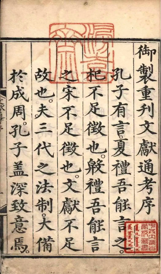 《文獻(xiàn)通考》所述歷代典章制度,上起上古,下至南宋寧宗嘉定末年。該書立目參照《通典》,并有所發(fā)展。全書分為二十四考,每一考前有小序,說(shuō)明著述的成規(guī),考訂的新意,每考之下又分為若干子目,子目?jī)?nèi)容皆按時(shí)間先后排列。撰寫體例是按文、獻(xiàn)、考三個(gè)層次排列,凡頂格排行者,即所謂“文”,也就是“敘事”部分。凡低一格排行者,即所謂的“獻(xiàn)”,也就是“論事”部分。凡低兩格排行者,即所謂“考”,也就是作者自己的議論,其內(nèi)容包括指點(diǎn)歷史演變的線索、評(píng)判是非、考辨史料和解釋名物等。