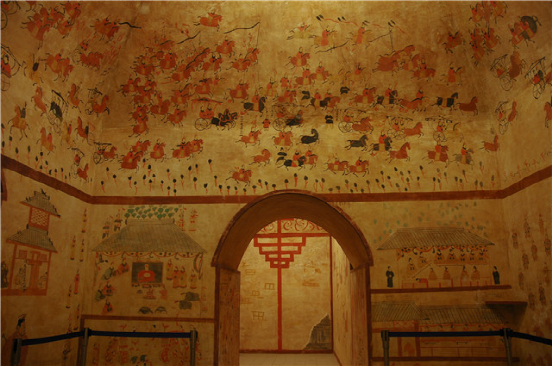 和林格爾東漢壁畫墓復原陳列展。位于和林格爾縣新店子鎮(zhèn)的小板申東漢“使持節(jié)護烏桓校尉”壁畫墓,是秦漢文化的主要標志性實物,是東漢莊園制度的真實再現(xiàn),也是民族團結(jié)的重要歷史見證。本館以1:1.5的比例進行了復制并展示給觀眾。