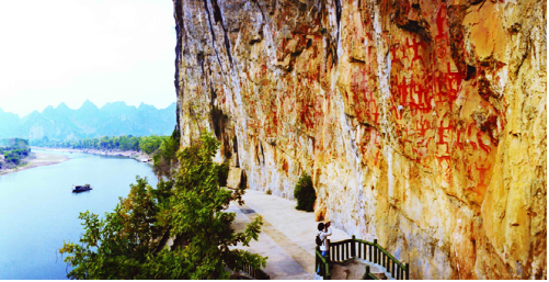 2.花山巖畫景區(qū),國家4A級旅游景區(qū),位于寧明縣城西北25公里的明江河畔。2016年7月15日,在世界遺產委員會第40次大會上,“中國廣西左江花山巖畫文化景觀”成功列入世界文化遺產名錄,這是廣西第一處世界文化遺產,也是中國第一處巖畫類世界文化遺產。