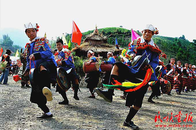 德昂族中若一家有人病故老死,家屬即在門外對(duì)天鳴放三槍,寨里的鄉(xiāng)親、鄰里聞?dòng)?,便背著米、提著菜、拿著?..