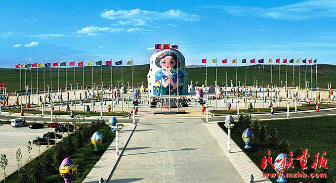 中國最大的陸運口岸城市滿洲里的套娃廣場彩旗飄揚(呼倫貝爾市委宣傳部供圖)