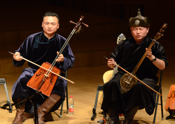 呼麥,又名“浩林潮爾”或“潮爾”,漢譯為“喉音藝術(shù)”,主要流傳于中國內(nèi)蒙古和新疆、蒙古國的西部和俄羅斯的圖瓦共和國等蒙古人聚居區(qū)。呼麥?zhǔn)敲晒抛鍙?fù)音唱法潮爾音樂的高超演唱形式,演唱者運(yùn)用特殊的聲音技巧,一個人同時唱出兩個聲部,其演唱難度可想而知。