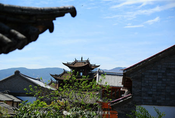 雖然經(jīng)過歲月侵蝕,但院落的每一個角落,無論是精心裝飾的門楣還是匠心獨具的花窗,盡管經(jīng)過了多少年的風(fēng)雨,依然令人感到當(dāng)年的氣魄和獨有的魅力。在馬如驥大院的二樓,那藻井的彩繪今天依然清晰美麗,有彩繪《三文筆》、《阿文學(xué)?!?、《雞足山莊嚴(yán)塔》、《上海街景》。特別是彩繪《上海街景》,被專家視為不可多得的珍貴資料,它不僅惟妙惟肖的再現(xiàn)了當(dāng)年十里洋場上海灘的風(fēng)華,還體現(xiàn)了馬幫商人的開放胸襟和開闊眼界,體現(xiàn)了對現(xiàn)代化生活的向往和對未來的憧憬。