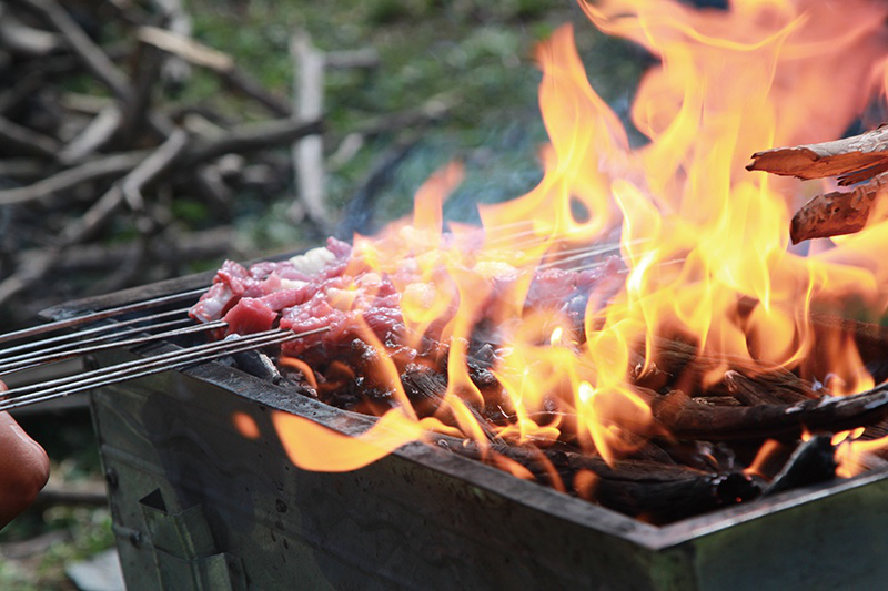 烤肉簽子用細(xì)鋼筋砸扁制成,也可用自行車輻條制作——新疆烤肉向來少用竹簽或木簽。在南疆,更有用沙漠植物梭梭柴做烤簽烤肉,肉香點綴果木香,粗獷原始、風(fēng)味獨特,只是出于環(huán)??紤],如今很少見了。串肉人王者般坐在小山般的肉塊前,取鐵簽一根,左手拿肉平放,將鐵簽從肉的背面穿入、正面穿出,盡可能將肉穿得平整,厚薄均勻。最關(guān)鍵要兩瘦一肥搭配,烤時才能讓肥肉的油脂流入到瘦肉中,讓烤肉更加美味。燃煤選產(chǎn)自新疆伊犁的優(yōu)質(zhì)無煙煤,這種煤熱量高火力旺,煤灰潔白細(xì)膩,無半點爐碴。