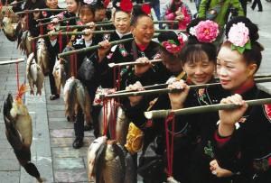 2015年11月25日,是貴州省黔東南苗族侗族自治州雷山縣苗族新年的大年初三,自11月23日至25日,貴州雷山縣大塘鎮(zhèn)、丹江鎮(zhèn)、西江鎮(zhèn)三鎮(zhèn)六苗寨的5218名姑媽、姑爹一起回娘家過苗年。“左手一只雞,右手一只鴨,身后還背著一個胖娃娃”的“回娘家”場景,在苗寨里展現(xiàn)到了極致。