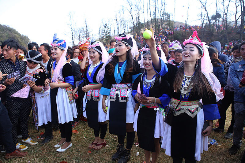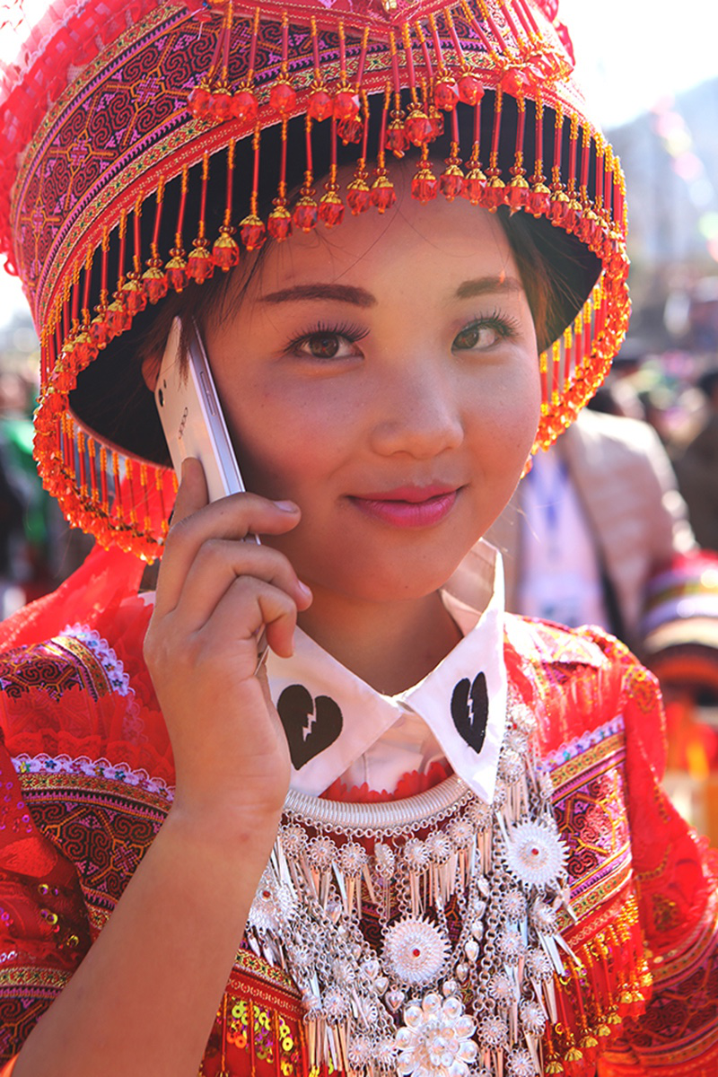 由于在歷史上經(jīng)歷長(zhǎng)時(shí)間、大范圍的遷徙,苗族文化形成了較強(qiáng)的環(huán)境適應(yīng)能力和流動(dòng)變遷特征。節(jié)日作為民族文化的凝集點(diǎn),慶祝方式和形態(tài)也處于動(dòng)態(tài)的演變和傳承之中。在大布紅的花山場(chǎng),一個(gè)從老撾過來(lái)的苗族女子樂隊(duì)讓當(dāng)?shù)氐拿缱迦烁械胶闷妗f(shuō)著同樣的西部苗語(yǔ),卻穿著略顯不同的衣服。她們排成一行,教人們一來(lái)一往地扔繡包,一時(shí)間圍觀者無(wú)數(shù)。不消多久,女子樂隊(duì)手中的CD就在人群中銷售一空。
