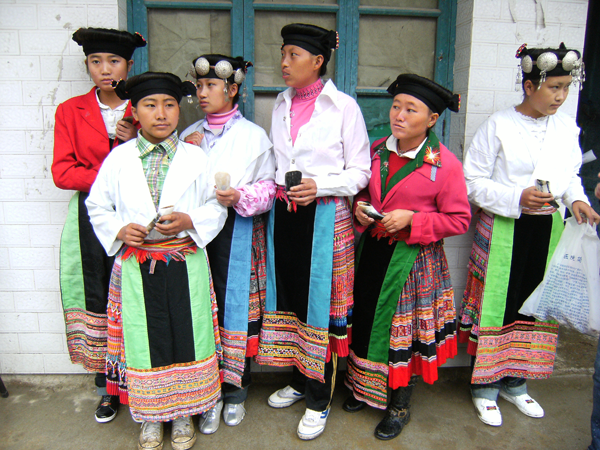 各地布依族求子習(xí)俗不盡相同,比較具有代表性的有“搭花橋”“做橋”和“改都雅”。布依族普遍信奉“娘娘神”,結(jié)婚多年而未生子的育齡夫婦,要請布摩擇吉日搭一座“花橋”,向娘娘神求子,稱為“搭花橋”?!白鰳颉迸c“搭花橋”的目的和意義基本相同,但形式和規(guī)模稍有差異?!白鰳颉钡囊?guī)模較大,舉行儀式時,全部親戚都要到齊,相當(dāng)隆重。活動通常要延續(xù)3至7天,內(nèi)容豐富,有歌、舞、武術(shù)等,用布依語唱《米魂引花歌》《粽子引花歌》和《雞蛋引花歌》等20余部與求子相關(guān)的古歌,人們一邊唱一邊將白布扔向插在花筒里的“紅紙花”,粘上一枝花,就標(biāo)志得一個孩子,其場面熱鬧非凡。在貴州省的安順一帶布依族地區(qū),新媳婦懷第一胎時,為了讓她能順利生下長子或長女,要在家中舉行“改都雅”(敬門神)儀式,設(shè)壇奉獻豬肉、公雞、酒、糯米飯等祭品,由舅家選擇一對竹節(jié)一致、高矮相同的金竹,派兩名男性長者送竹前來祝賀,意為“神竹送子”。此外,在一些地方還有“要回傘”和“要花糯米飯”的求子習(xí)俗。