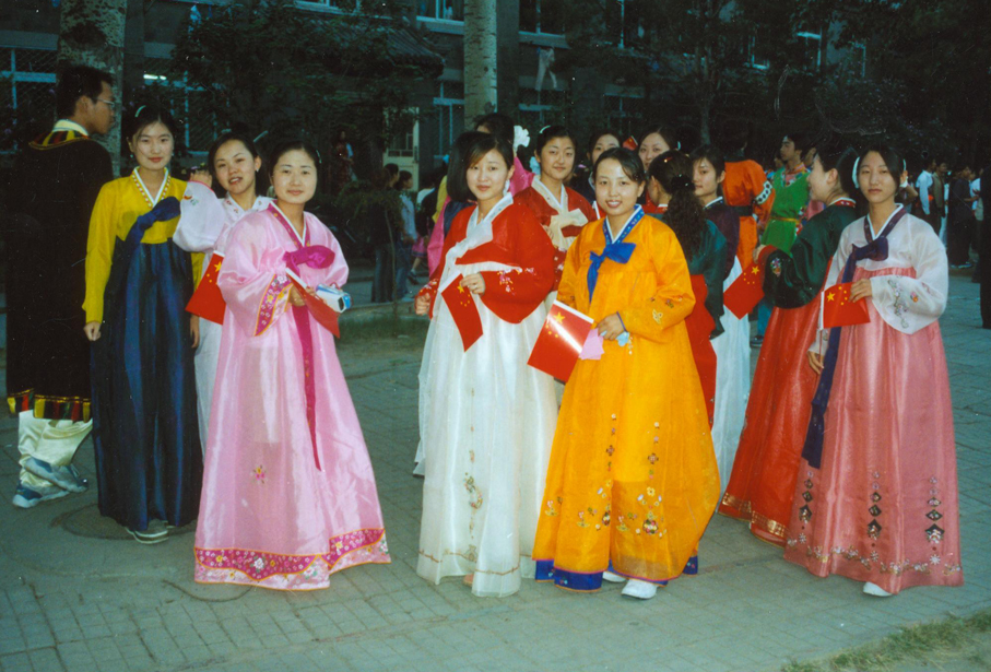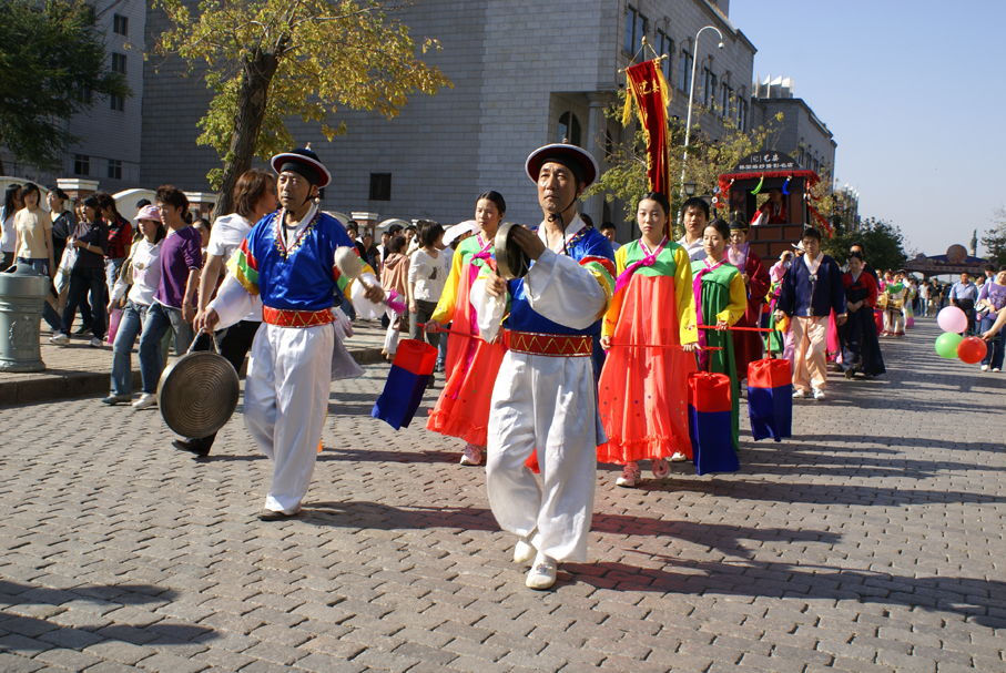 女子婚前穿鮮紅的裙子和黃色的上衣,衣袖上有色彩繽紛的條紋;婚后則穿紅裙子和綠上衣。年齡較大的婦女,可在很多顏色鮮明、花樣不同的面料中選擇?!岸桃麻L裙”,是朝鮮族服飾中最具傳統(tǒng)的服裝。