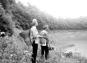 記得小時(shí)候有一回上學(xué),我在“之”字形的山道上遇到一撥“背腳佬”。只見他們那布滿蚯蚓般青筋的腿肚顫抖著,手中鑲著鐵釘?shù)拇蜩圃谑迓飞隙‘?dāng)?shù)貫R出火星,草鞋里的雙腳踏著堅(jiān)實(shí)的土地。每當(dāng)轉(zhuǎn)過一個(gè)彎,他們就一邊把打杵支在背簍下面,一邊發(fā)出“哎——喲嗬——”的吼聲。抹下一串汗珠,疲勞仿佛也被扔下山,引起陣陣回響。不知是誰(shuí)還吼起了粗獷的山歌:“郎在高山打傘來,姐在房中做花鞋,雙手接過郎的傘,用手把姐抱在懷……”