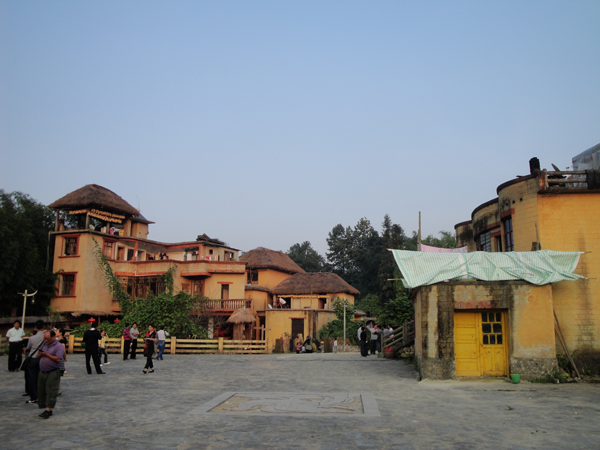 房屋建筑一般是土、木結(jié)構(gòu)的兩層樓房,墻基用石塊從地下半米深入砌至高出地面半米,便從基石上用土坯砌墻,用堅實的圓形或方形木柱支撐屋檐或門樓。
