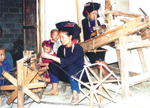 哈尼族制作服飾的歷史悠久,村村寨寨都有本民族自行研制的成套木制服飾制作機(jī)(制線(xiàn)機(jī)、絞線(xiàn)機(jī)、織布機(jī)等),家家戶(hù)戶(hù)都有制作服飾的能手。不論是逢年過(guò)節(jié),還是日常的農(nóng)閑時(shí)間,哈尼山寨隨處都可以看到婦女們制作服飾的場(chǎng)景。有的是獨(dú)家用一套服飾制作機(jī),有的是幾家合用一套服飾制作機(jī),以純棉花為原料,自行設(shè)計(jì)制作,形成一套獨(dú)辟蹊徑的服飾制作技術(shù)(制線(xiàn)、絞線(xiàn)、織布、染布、服飾設(shè)計(jì)、裁剪、刺繡等)。她們能用繡、挑、扣等方法,在衣褲上刺繡各種花卉、龍、虎、雞、鳥(niǎo)、魚(yú)等復(fù)雜的圖案,精致巧妙,鮮艷奪目。