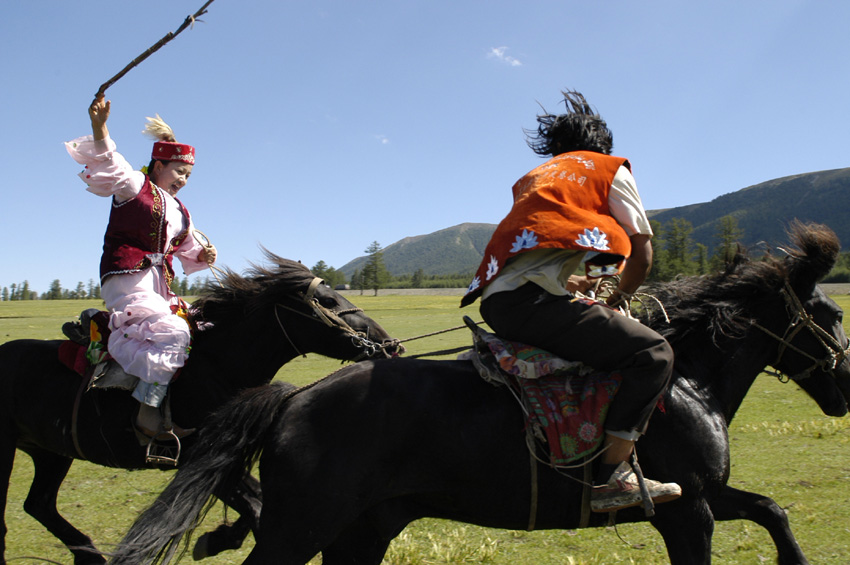 哈薩克族的民間體育活動(dòng)大多會(huì)在夏季牧場,鮮花盛開之時(shí)舉行,許多體育活動(dòng)帶有濃厚的游牧文化特色,給人一種震撼人心之感。這些體育活動(dòng)不僅是一種健身方式,也是牧場上最受歡迎的娛樂活動(dòng)。很多時(shí)候,觀看者很難分清楚他們是在進(jìn)行體育競技,還是在游戲。因?yàn)橛行╉?xiàng)目不僅表現(xiàn)出是他們的勇敢、聰明和機(jī)智,還表現(xiàn)出了他們剽悍、粗獷、豪邁的性格。經(jīng)過長時(shí)間的發(fā)展,許多體育項(xiàng)目竟成了哈薩克族人民婚喪嫁娶、人生禮俗等喜慶活動(dòng)或重要場合的組成,同時(shí)也是兄弟民族共同的精神財(cái)富。