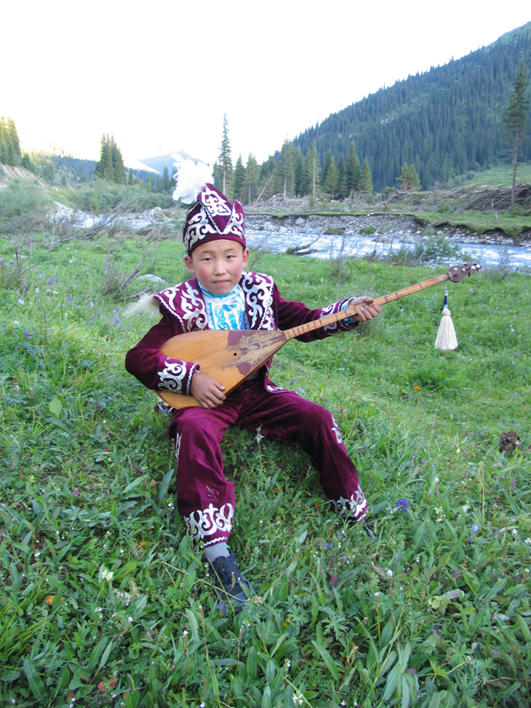 哈薩克族的音樂(lè)極具民族特色,樂(lè)器種類和樂(lè)曲形式也非常豐富。“冬不拉”為彈奏樂(lè)器,是哈薩克族民間最流行的傳統(tǒng)樂(lè)器,分為高、中、低等十幾種。冬不拉易學(xué)易帶,深受廣大哈薩克族人民的喜愛(ài)。拉奏樂(lè)器以“柯布孜”為代表,演奏起來(lái)聲音類似小提琴,但形狀要比小提琴?gòu)?fù)雜,其上端向里彎,琴腹如勺,腹面張開(kāi),背面蒙有羊皮,琴弦是用馬尾或牛筋制做而成的。吹奏樂(lè)器主要有“斯伯孜俄”,民間藝人喜好并擅長(zhǎng)使用此物,被哈薩克族譽(yù)為“心笛”。這種樂(lè)器外形酷似豎簫,音色悠揚(yáng)而柔和。哈薩克族的打擊樂(lè)器也有很多,極有特色的是“阿迪托亞克”。這種打擊樂(lè)器由兩個(gè)組成一對(duì),演奏時(shí)互相擊打,其外形似馬蹄,加之所奏出的效果也像馬蹄踩在地面上的聲音,哈薩克族稱之為“馬蹄音”。