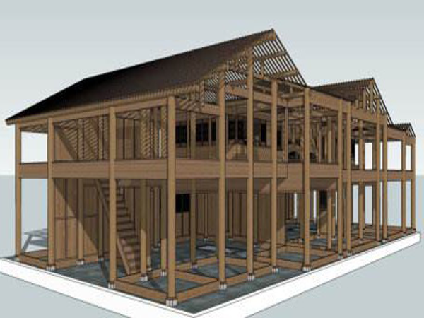 傣族人民多居住在平壩地區(qū),常年無雪,雨量充沛,年平均溫度達(dá)21℃,沒有四季的區(qū)分,干欄式建筑是很合適這種環(huán)境。竹樓用各種竹料(或木料)穿斗在一起,互相牽扯,結(jié)構(gòu)極為牢固。