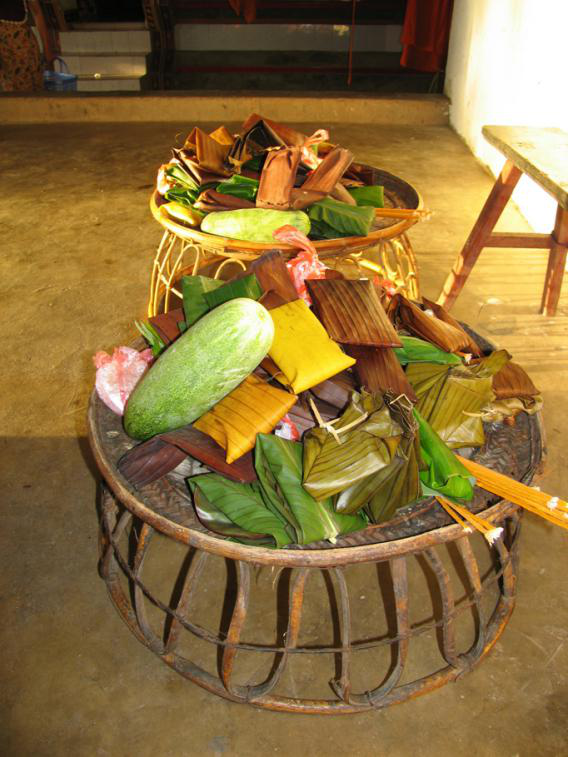 所有佐餐菜肴及小吃均以酸味為主,如酸筍、酸豌豆粉、酸肉及野生的酸果;喜歡吃干酸菜,其制法是把青菜曬干,再用水煮,加入木瓜汁,使味變酸,然后曬干儲藏。吃時放少許煮菜或放在湯內(nèi)。這種酸菜,有些地方的傣族幾乎每天都吃。據(jù)說傣族之所以常食酸味菜肴,是因常吃不易消化的糯米食品,而酸味食品有助于消化。苦瓜是產(chǎn)量最高、食用最多的日常蔬菜。除苦瓜外,西雙版納還有一種苦筍,因此傣族風(fēng)味中還有一種苦的風(fēng)味,較有代表性的苦味菜肴是用牛膽汁等配料烹制的牛撒皮涼菜拼盤。