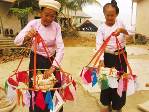關(guān)于孔明燈的制作工藝,現(xiàn)在的年輕人掌握的已經(jīng)不多了,主要還是靠老人。景洪市嘎灑鎮(zhèn)曼回索村60多歲的民間手工藝人巖妞就是做孔明燈很有名氣的老人。巖妞制作孔明燈已經(jīng)有20多年了,他做的孔明燈飛得高,還能帶著鞭炮在空中啪啪炸響,增添了節(jié)日氣氛。在今年4月13日傣歷1374年新年節(jié)(潑水節(jié))來臨之際,巖妞忙得不亦樂乎,前來找他定做孔明燈的人絡(luò)繹不絕。
