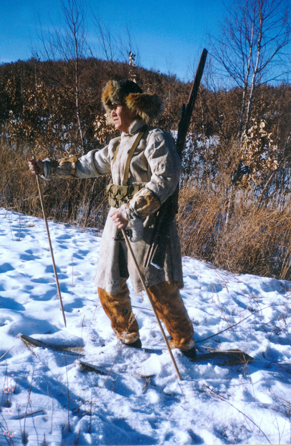 肯古楞,即滑雪板,是達(dá)斡爾人早期交通工具?;┌逵盟赡尽迥景逯谱?,約長(zhǎng)1.2米、寬15厘米,前端翹起。在底面貼帶毛的野公豬脊皮,鬃毛向后,或貼夏季的狍子脊皮,以減少摩擦,提高滑速?;r(shí)雙手撐桿,在冬季雪厚時(shí)在山野中代步或追蹤野獸。