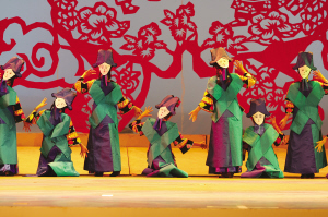 達(dá)斡爾族有語(yǔ)言沒(méi)有文字,然而在《神奇的達(dá)斡爾》演出現(xiàn)場(chǎng),觀眾卻能夠感受到演員通過(guò)聲音和肢體語(yǔ)言記錄下來(lái)的活的文字,并且重新思考非物質(zhì)文化遺產(chǎn)的意義所在。近兩個(gè)小時(shí)的演出,觀眾對(duì)達(dá)斡爾族的非物質(zhì)文化遺產(chǎn)有了直觀的感受:達(dá)斡爾族搖籃,它的制式體現(xiàn)了達(dá)斡爾人對(duì)生命的思考和對(duì)自然的尊重;哈尼卡,達(dá)斡爾族傳統(tǒng)的剪紙藝術(shù),伴隨著金色的童年,充實(shí)著達(dá)斡爾人色彩斑斕的心靈世界;達(dá)斡爾族頸力賽,勞動(dòng)之余一項(xiàng)普及性民間傳統(tǒng)體育競(jìng)技運(yùn)動(dòng),給人們平常的生活帶來(lái)無(wú)窮的樂(lè)趣——它們,都于2007年被列入第一批內(nèi)蒙古自治區(qū)非物質(zhì)文化遺產(chǎn)保護(hù)名錄。不僅如此,曲棍球(達(dá)斡爾語(yǔ)為“波依闊”,達(dá)斡爾族人喜愛的民間傳統(tǒng)體育項(xiàng)目)、魯日格勒(達(dá)斡爾族民間舞蹈,多表現(xiàn)狩獵生活和勞動(dòng)場(chǎng)面)、烏春(達(dá)斡爾族特有的說(shuō)唱藝術(shù))還被列入第一批國(guó)家級(jí)非物質(zhì)文化遺產(chǎn)保護(hù)名錄。
