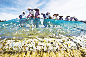 京族人民拉大網(wǎng)捕魚(yú)。資料圖片