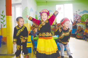 涼山州雷波縣汶水鎮(zhèn)馬處哈三峽新村幼教點(diǎn),孩子們?cè)诳鞓?lè)地玩耍。冷文浩攝