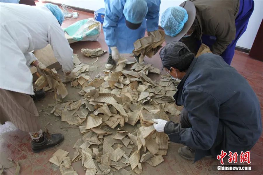 挖掘工作持續(xù)了3天才結束。由于當時寺院條件簡陋,古籍散葉被臨時裝入編織袋中,足足裝滿了68袋。