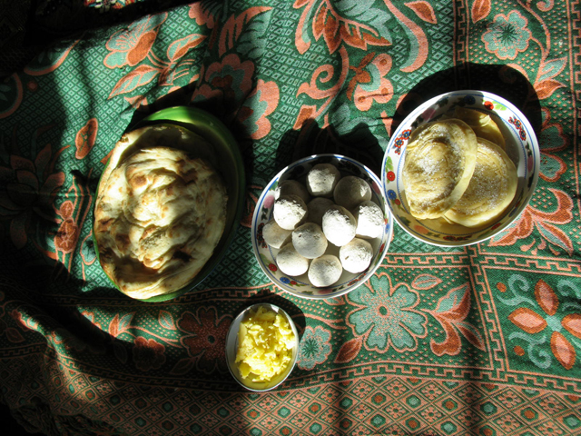 柯爾克孜人民日常飲食中的奶制品和面食(劉軍攝)