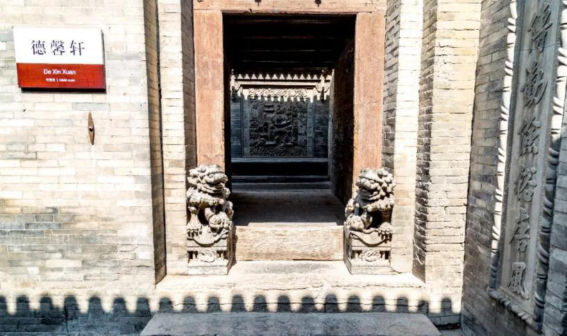 正廳大門之上的門楣,是一塊精美絕倫的木雕,采用雕、嵌、描、繪等多種裝飾技法,將喜鵲鬧春的場景表達(dá)得惟妙惟肖,具有極高的藝術(shù)價(jià)值;除了雕刻著代表中國傳統(tǒng)文化精神的梅蘭竹菊外,許多地方的門窗,尤其是專供男孩子們讀書的庭院中的窗子,都雕成簡潔古樸的書本或折扇的形狀,表達(dá)了“萬般皆下品,唯有讀書高”的文化追求。