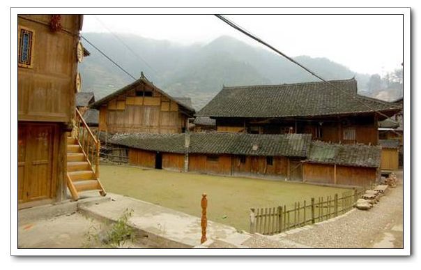 苗家木樓也叫“吊樓”,為融水苗族世俗傳統(tǒng)民居,在湘西、鄂西、貴州地區(qū)的吊腳樓也很多。吊角樓多依山就勢而建,呈虎坐形,以“左青龍,右白虎,前朱雀,后玄武”為最佳屋場,后來講究朝向,或坐西向東,或坐東向西。吊腳樓屬于干欄式建筑,但與一般所指干欄有所不同。干欄應(yīng)該全部都懸空的,所以稱吊腳樓為半干欄式建筑。從前的吊腳樓一般以茅草或杉樹皮蓋頂,也有用青石板蓋頂?shù)?。苗族的吊腳樓通常建造在斜坡上,分兩層或三層。最上層較矮,只放糧食一般不住人。樓下堆放雜物或作牲口圈。兩層者則不蓋頂層。一般以竹編糊泥作墻,以草蓋頂。