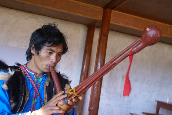 傈僳族民間器樂藝術(shù)具有獨(dú)特的民族風(fēng)格和特色,在傈僳族民間音樂中有重要地位。其種類主要有琵琶(劉軍攝)、口弦、竹笛、葉笛、葫蘆笙(劉軍攝)、二胡等。