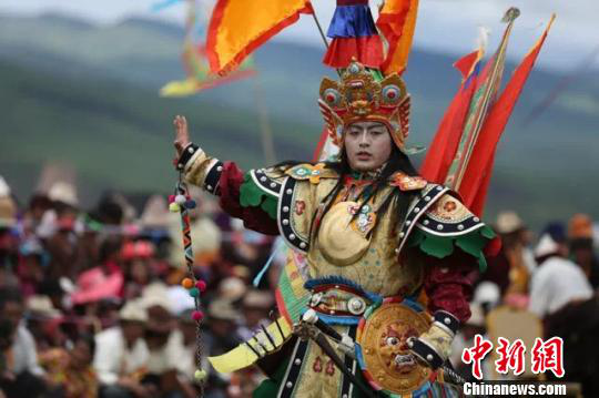 圖為掛牌儀式現(xiàn)場上演藏戲《格薩爾王傳》 鐘欣 攝