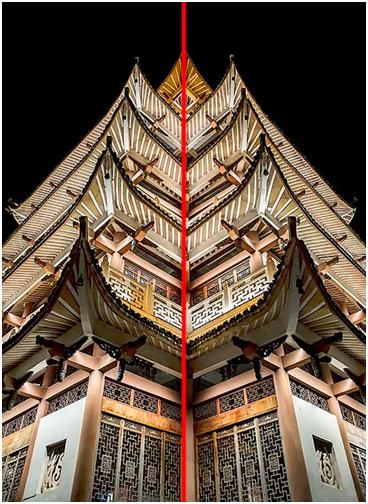 對稱法構(gòu)圖,就是中軸對稱,分為縱軸對稱和橫軸對稱,把整個(gè)畫面進(jìn)行平分,帶來視覺的平衡,這種對稱法構(gòu)圖主要是用在一些很對稱的題材上,比如建筑類題材上用的要多一些。