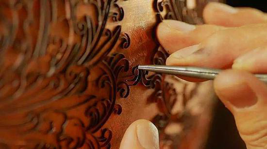 工藝美術(shù)大師米振雄堅(jiān)持“景泰藍(lán)首要的是手工藝美,從打胎到磨光,都必須是手工藝”??此銎z,是一種安靜的欣賞。大師一邊用手指甲蓋抵住紫銅絲,另一只手抓著鑷子,拉長(zhǎng)、彎折、回旋。如何拿捏花樣的形狀、掰出弧度大小,全憑師傅一雙巧手。