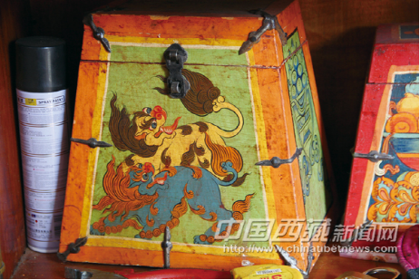 藏式家具上的特色繪圖,陳舊的用色方式完美地展現(xiàn)了悠久的文化內(nèi)涵。