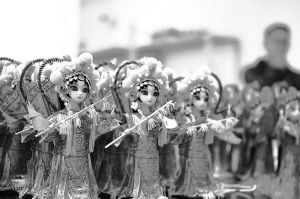 據(jù)貴州盛華職業(yè)學(xué)院唐人坊非物質(zhì)文化遺產(chǎn)傳承學(xué)院副院長秦貞錚介紹,“唐娃娃”全都是手工制作,十分復(fù)雜,完成一個娃娃可能要經(jīng)過上百道工序?!啊仆尥蕖母叨入m然只有30厘米,但這些人物穿的衣服幾乎是京劇劇裝的原樣縮小版。它們的妝容都是手畫的,頭發(fā)也是手工盤上去的,帽子采用傳統(tǒng)掐絲工藝?!?/p>