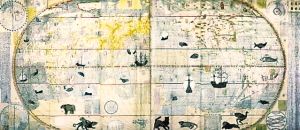 李之藻年輕時(shí)就對(duì)實(shí)學(xué)頗感興趣,曾自行繪制過明朝兩京十三省的地圖。見到利瑪竇用西法繪制的世界地圖后,李之藻敏感地意識(shí)到,這個(gè)地圖的繪制方法與中國傳統(tǒng)的“計(jì)里畫方”方法不同,是“取天文以準(zhǔn)地度”,用經(jīng)緯度確定地理方位。對(duì)利瑪竇的學(xué)問一見而傾心的李之藻,每天都要到利瑪竇的公寓學(xué)習(xí)地理、天文知識(shí),每次都要花上四五個(gè)小時(shí)。1602年,李之藻與利瑪竇結(jié)合中西繪圖技術(shù),合作繪制了一版世界地圖《坤輿萬國全圖》,這幅地圖改變了當(dāng)時(shí)通行的將歐洲居于地圖中央的西方繪圖格局,把子午線向西移動(dòng)170度,從而使東亞的中國居于地圖的中央,并且全圖標(biāo)上了詳細(xì)的漢字標(biāo)識(shí),這是中國最早的世界地圖。