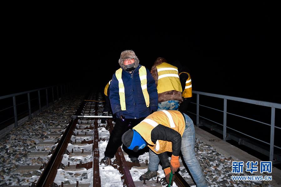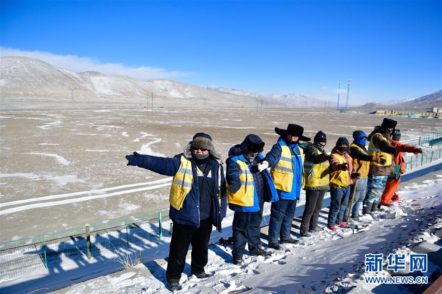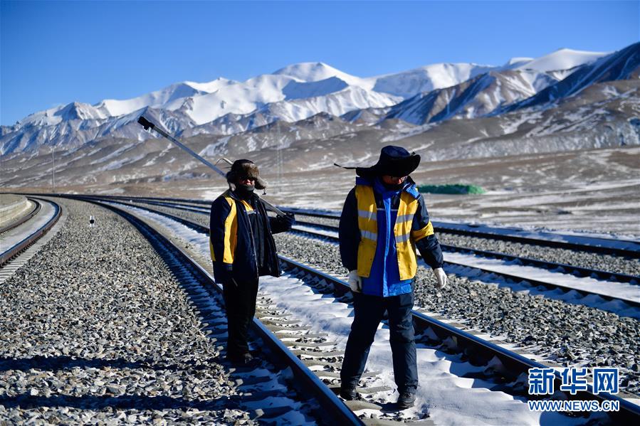 1月11日,中國(guó)鐵路青藏集團(tuán)有限公司格爾木工務(wù)段望昆線(xiàn)路車(chē)間的于本蕃(右一)和