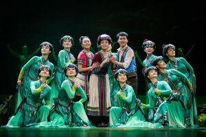 在舞劇敘事方式上,總導演之一董華興將民族性與現代性相融合,嘗試時空切換,段落重組,故事情節(jié)的倒敘、插敘,真實性與虛擬性相結合等方法?!耙魳分谱?、舞蹈語匯、服裝設計等方面都要符合當地群眾的生活,接地氣老百姓才會喜歡。”《幸?;ㄉ健房倢а葜获R文靜說。
