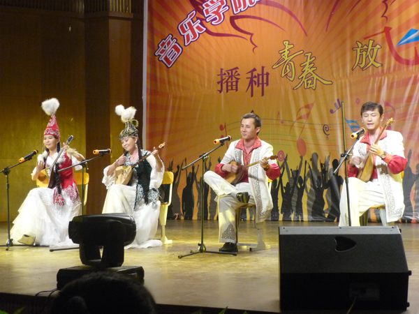 早在本世紀(jì)初,新疆師范大學(xué)音樂(lè)學(xué)院就曾在意大利、新西蘭和澳大利亞的國(guó)際樂(lè)壇,依靠本土特色作品奪得了多枚金牌。近年來(lái),學(xué)院老師、學(xué)生依然保持這一傳統(tǒng)優(yōu)勢(shì),在各項(xiàng)文藝賽事、藝術(shù)展演中獲獎(jiǎng)無(wú)數(shù)。2009、2010年學(xué)院民族樂(lè)隊(duì)與香港中樂(lè)團(tuán),在兩地聯(lián)袂上演“穿越時(shí)空、絲綢之路”音樂(lè)會(huì),引起香港、新疆兩地觀眾的熱烈反應(yīng),包括中央電視臺(tái)、鳳凰衛(wèi)視等主流媒體對(duì)音樂(lè)會(huì)進(jìn)行了深度報(bào)道,被譽(yù)為近年來(lái)理念與藝術(shù)的完美結(jié)合。學(xué)院木卡姆樂(lè)團(tuán)、冬不拉樂(lè)團(tuán)還在2012年文化部文華藝術(shù)院校獎(jiǎng)比賽中獲得五項(xiàng)大獎(jiǎng),在國(guó)內(nèi)引起巨大反響。