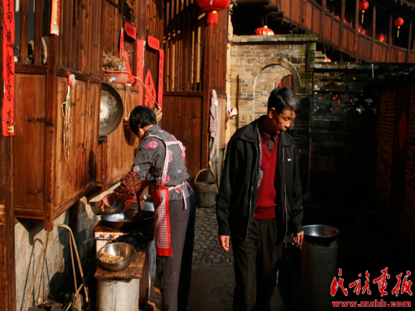 承啟樓所在的地區(qū)位于福建邊遠(yuǎn)山區(qū),農(nóng)田不多,除了水稻,山上的柿子樹和茶樹是這里的主要農(nóng)作物。以往,農(nóng)閑時(shí)節(jié),土樓里的人家主要是互相串門、喝茶、打牌,一派寧靜、閑適的農(nóng)家生活景象。