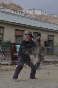 江孜這家工廠叫“鐵木家具廠”。廠長正在與員工一起沉浸于“打石頭”游戲帶來的快樂之中。廠長告訴記者:“如今,在江孜,以及西藏其他城市里,基本上看不到還有人玩這種游戲。只有鄉(xiāng)下在逢年過節(jié)的時候,人們才會玩這種游戲。而鐵木家具廠的工人之所以還玩‘打石頭’,是因為這項游戲是廠里保持了30多年的傳統(tǒng)。”