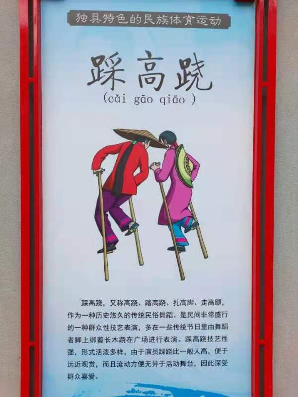 踩高蹺,又稱高蹺、踏高蹺、扎高腳、走高腿,作為一種歷史悠久的傳統(tǒng)民俗舞蹈。是民間非常盛行的一種群眾性技藝表演,多在一些傳統(tǒng)節(jié)日里由舞蹈者腳上綁著長木蹺在廣場進(jìn)行表演。踩高蹺技藝性強,形式活潑多樣,由于演員踩蹺比一 般人高,便于遠(yuǎn)近觀賞,而且流動方便無異于活動舞臺,因此深受群眾喜愛。