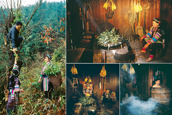 各地藥浴習俗不同,或每日洗浴,或擇吉日洗浴。由每戶最年長的男性上山采來追風藤、半邊楓、九龍盤、血藤等中草藥,洗凈,捆成把或切碎放入大鐵鍋中用水煮沸,待煮出藥汁后,撈去藥渣,把煮好的藥水放入專門藥浴的大桶——“龐桶”中。浴者赤身入桶,在保持適宜溫度(一般為38度左右)的藥液中浸泡20-30分鐘。鍋中有煮好的備用藥水,可保證每位藥浴者浴時的溫度相同。在藥浴中,通過浸泡,讓藥汁慢慢地滲入人體的毛細血管、遍及全身,達到以浴治病的目的?,幾逵盟幩瓷恚环帜信嫌?,全家皆洗,一家人輪流洗,水臟了就換,冷了再加熱?,幾鍖鹘y(tǒng)禮儀規(guī)范滲透到藥浴治療當中,規(guī)矩是:先客后主,先小后大,先老后少,先男后女。