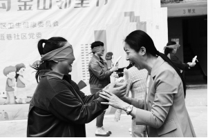 為進一步弘揚睦鄰友好、鄰里相親的傳統(tǒng)美德,阿勒泰市金山路街道以社區(qū)為單元、居民為主體,舉辦了“與鄰為善,以鄰為伴”“讓愛零距離”等形式多樣的“睦鄰節(jié)”活動,各社區(qū)還分別表彰了“最好鄰居”“最美婆婆”“模范丈夫”“民族團結(jié)之星”等。圖為社區(qū)開展的趣味運動會——“盲人”吃香蕉游戲。