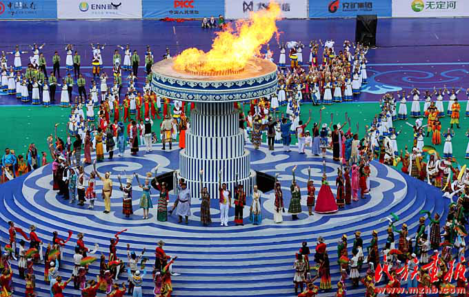 鄂爾多斯集團(tuán)的發(fā)祥地伊克昭盟在2001年改為鄂爾多斯市,改革開放以來經(jīng)濟(jì)社會迅速發(fā)展,2017年中國地級市全面小康指數(shù)排名第九。2015年第十屆全國少數(shù)民族傳統(tǒng)體育運(yùn)動會在鄂爾多斯市舉辦,這是開幕式現(xiàn)場(列來拉杜 攝影)